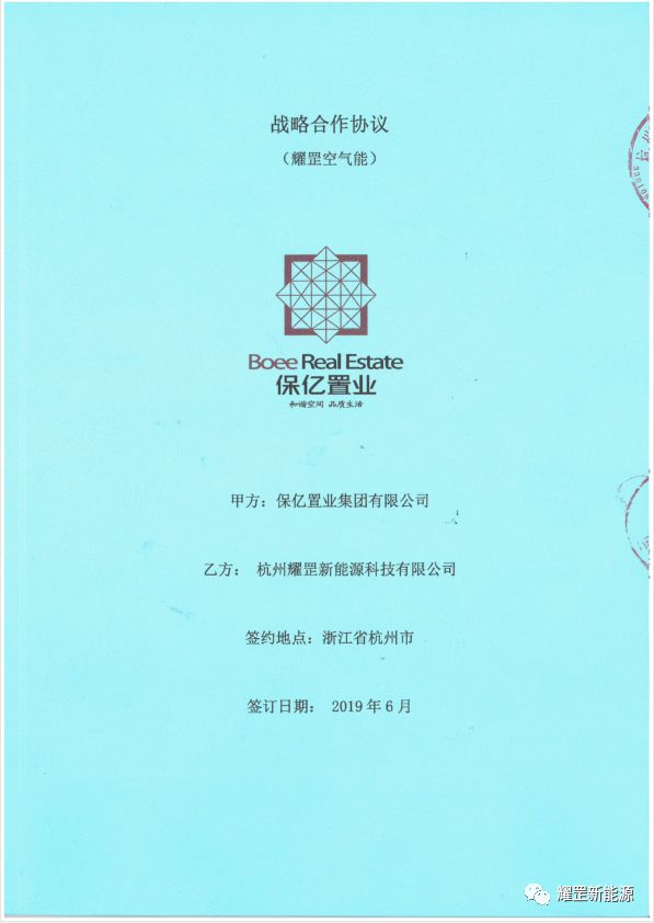 耀罡新能源再接再厉不断提升自身品质及售后服务质量,以企业自身扎实基础赢得保亿置业的空气能战略合作。